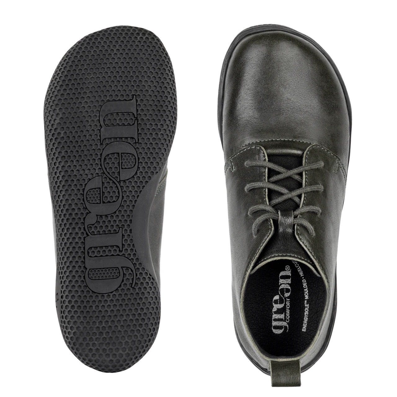 Bemærk, at Green Comfort's sortiment af barfodssko kommer med to såler. Deres velkendte EnergySole™ og en flad sål.