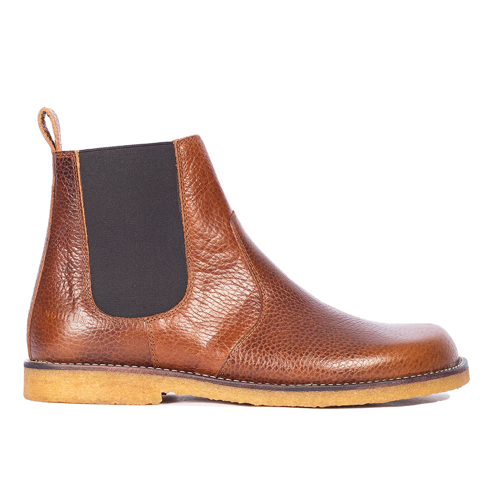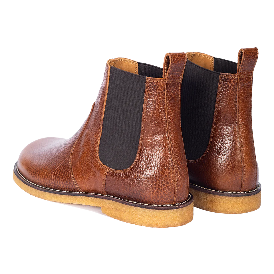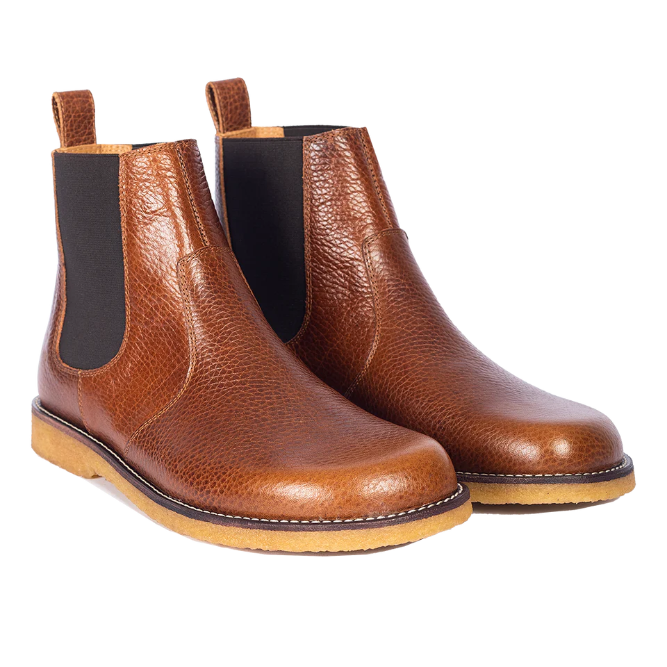 Klassisk Chelsea læderstøvle med rummelig pasform og kontraststikninger.