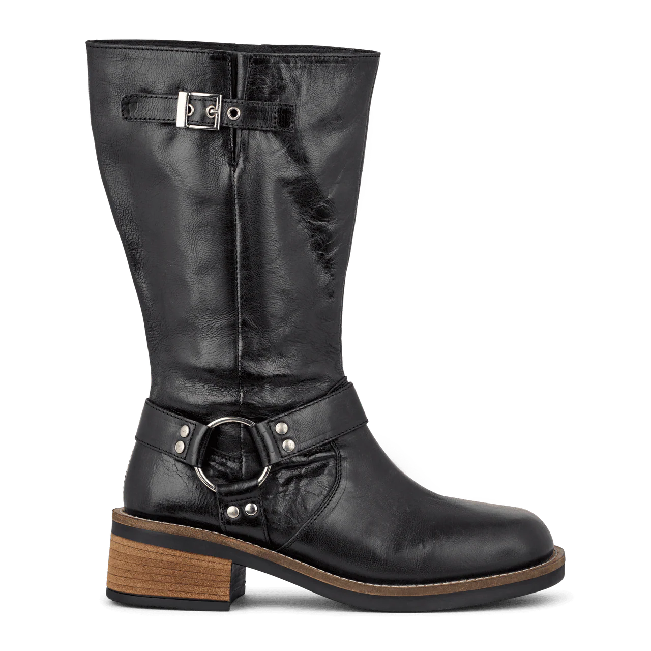 Copenhagen Celine er designet i læder twistet med cool detaljer og spænder for et råt touch.