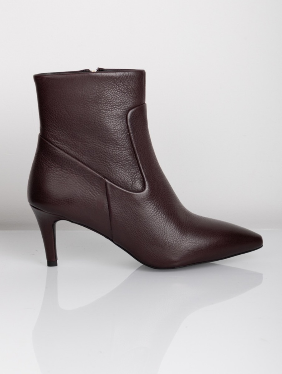Disse støvler har en tynd hæl og er kort i skaftet.