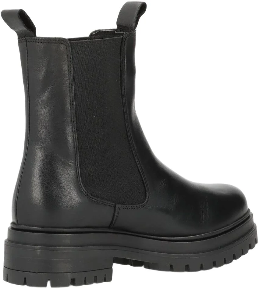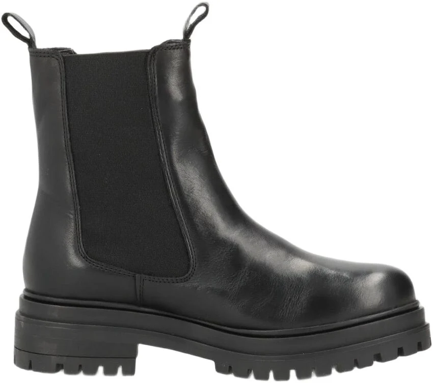 Støvlen er lavet i skind og har elastik i begge sider så det er nemt at trække støvlen på.