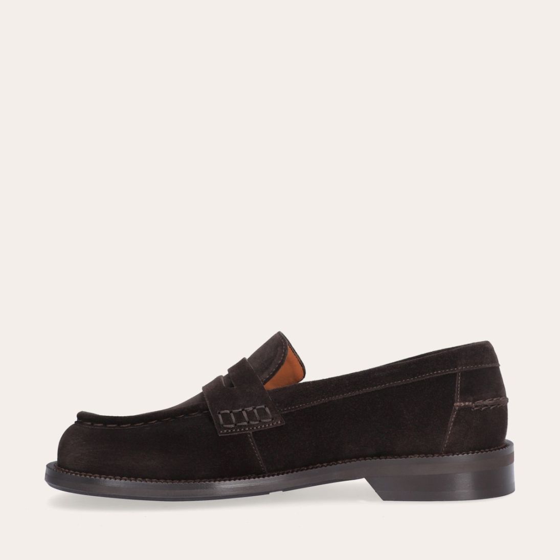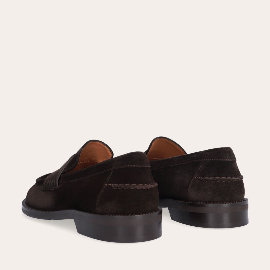 Håndlavet loafer fra Billi Bi, som er udført i mørkebrunt ruskind med rund tå.