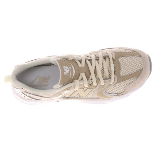 New Balance 530 low top sneaker i beige til teens er en populær model med trendy retro løbe design. Overdelen kombinerer åndbar mesh og imiteret skind, hvilket sikrer behagelig komfort hele dagen. Den polstrede pløs og kant øger komforten yderligere, mens de regulerbare snørebånd sikrer en perfekt pasform. ABZORB-mellemsålen giver enestående affjedring, der støtter og absorberer stød, hvilket er ideelt for en aktiv dag. Gummisålen er både fleksibel og holdbar, hvilket understøtter en aktiv dag. Denne sneaker er specielt tilpasset til tweens- og børnefødder og er ideel til hverdagsbrug i skolen og fritiden.