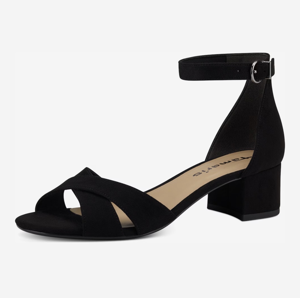 Klassisk meget smuk sandal fra Tamaris. Den sorte sandal har en hæl på 4,5 cm. Perfekt til sommerens fester.