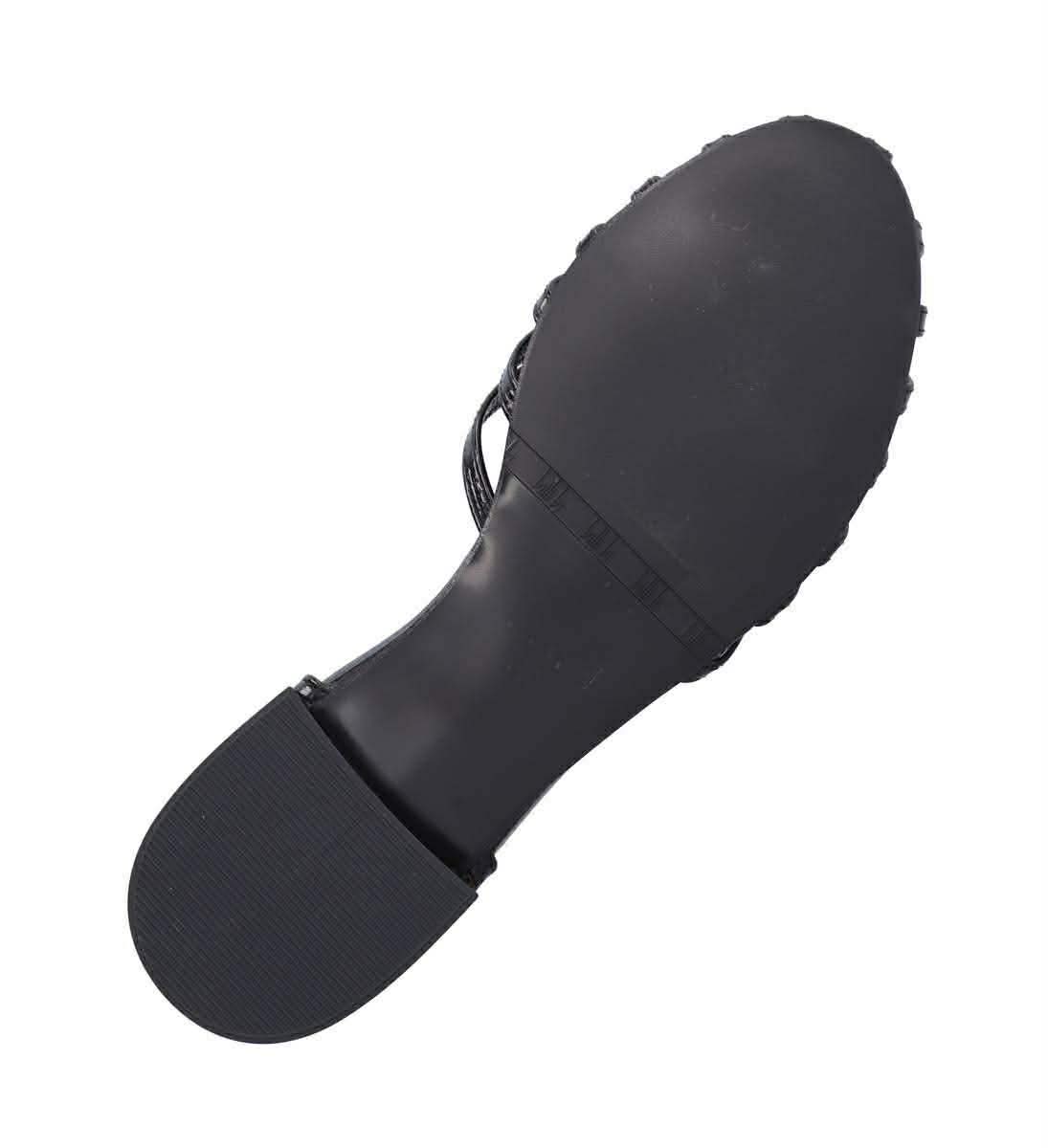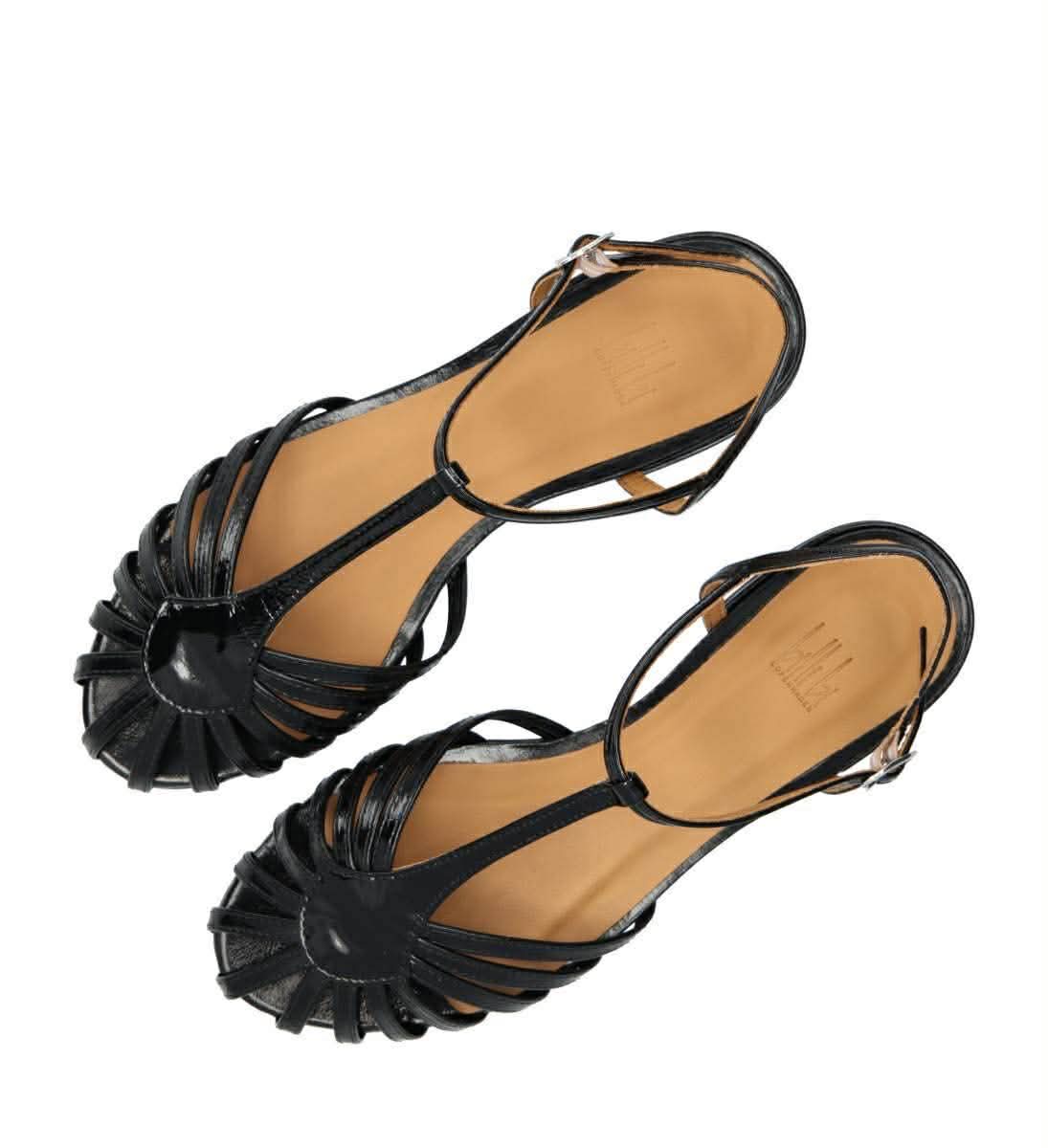 Sandalens front er designet med en T-rem og flere tynde stropper, som skaber en elegant, feminin silhuet.