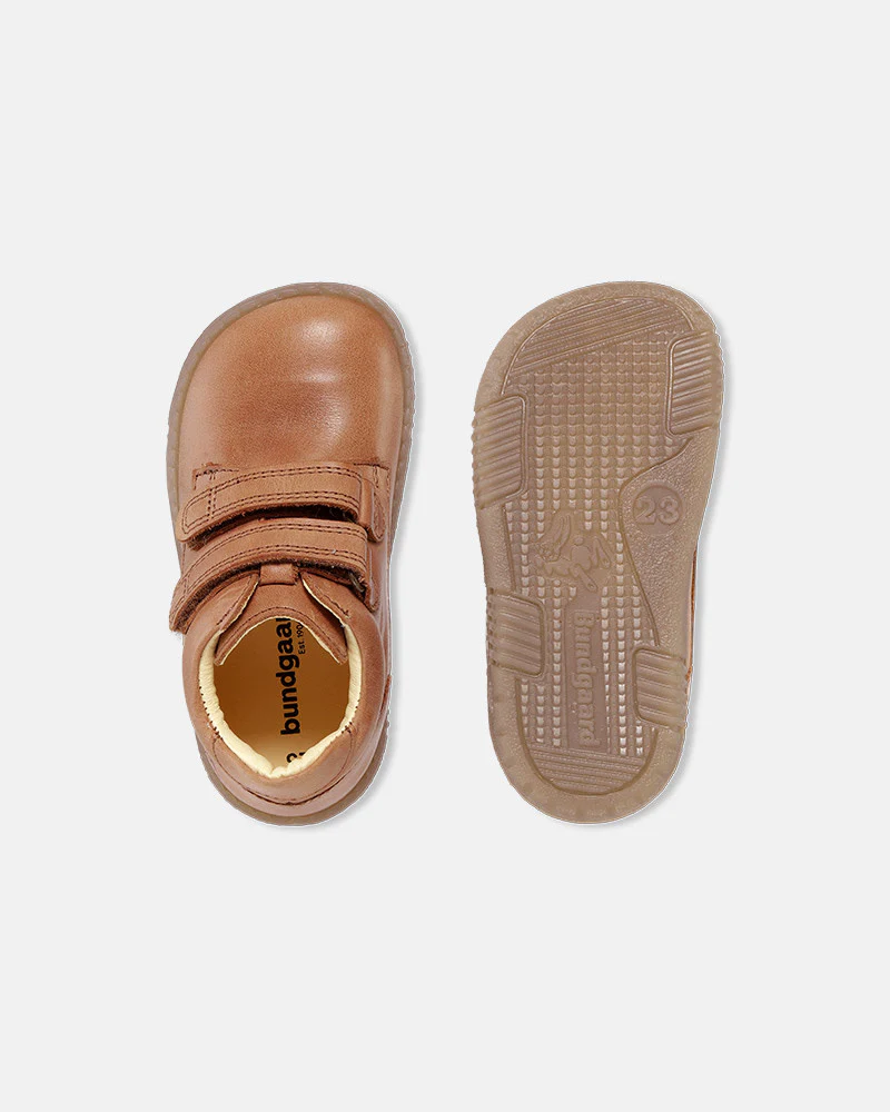 Bundgaard begynderskoene har to praktiske velcrostropper over vristen. De har en fast hælkappe og en god polstring omkring åbningen, så barnets fødder får den optimale støtte.