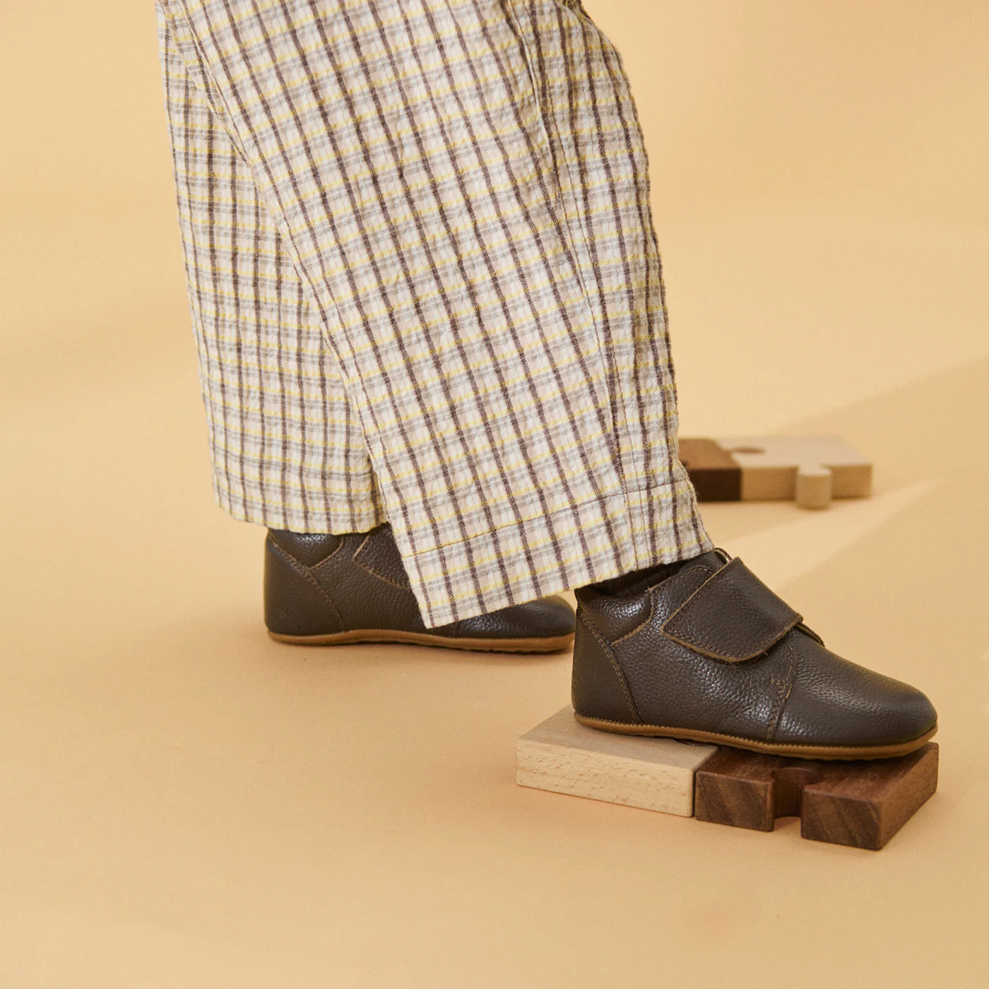 Skindfutterne går op til anklen, og den lukkes over vristen med en bred velcrolukning. Indvendigt er der foret med læder, og der er en god indersål af læder.